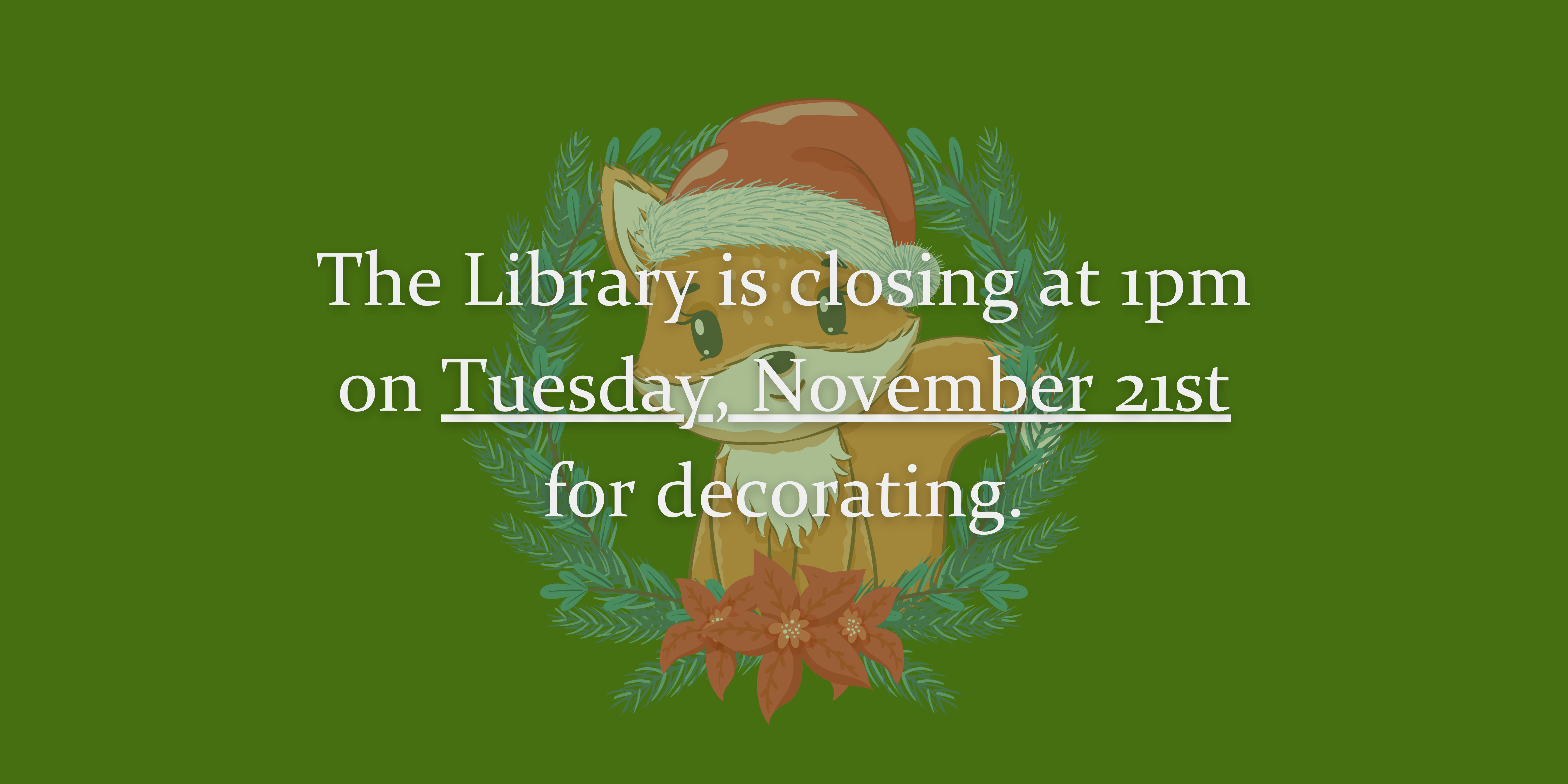 The library is closing at 1pm on Tuesday, November 21st,